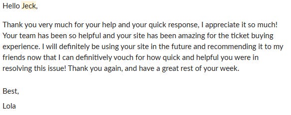 You’ll receive your tickets on time