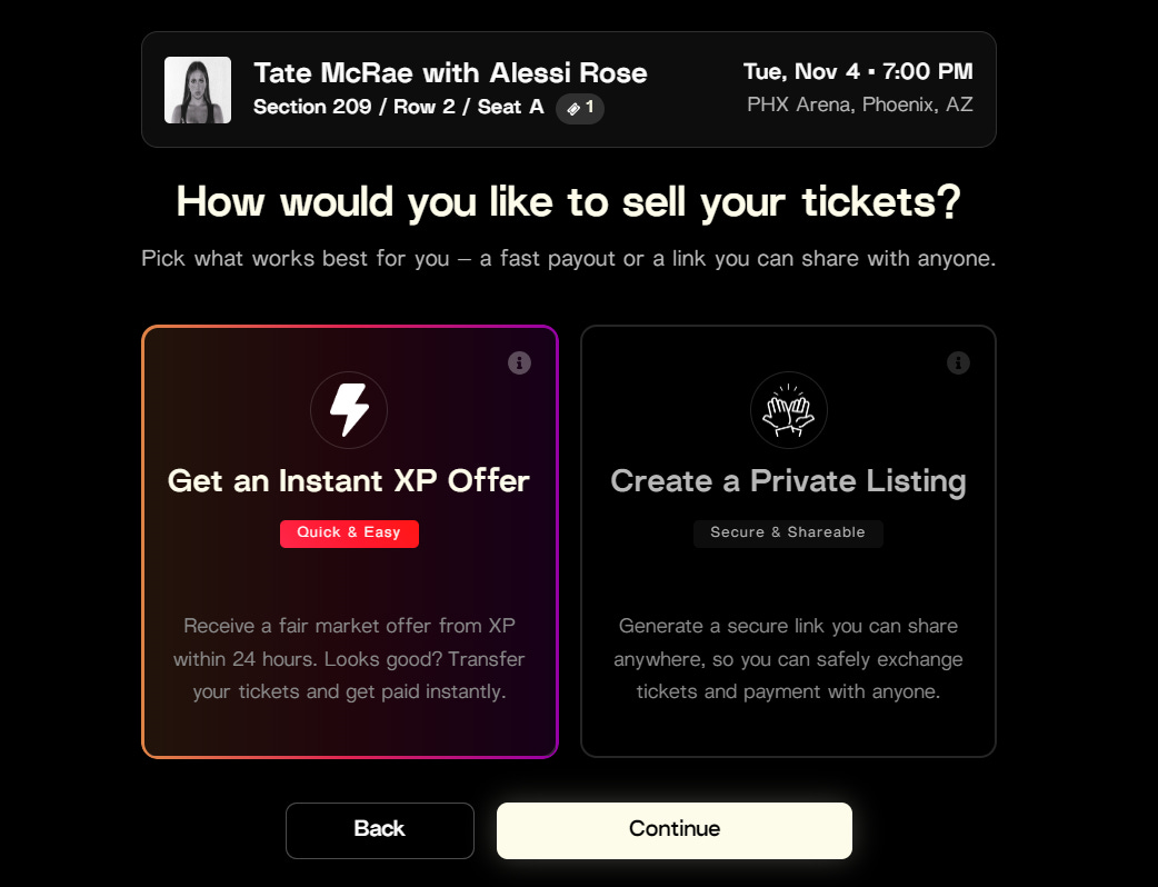 If you have tickets you can’t use, XP Sell is the easiest way to move them quickly and safely.