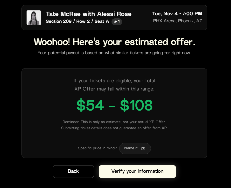 Accept the offer, and XP will pay you in XP Credit, you will get your money in your XP account, you can then withdraw via PayPal, Venmo or Coinbase. Your ticket is off your hands and in safe circulation for another fan to use.